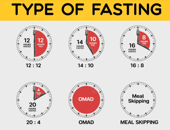 - 16/8 Method: Fast for 16 hours, eat during an 8-hour window.